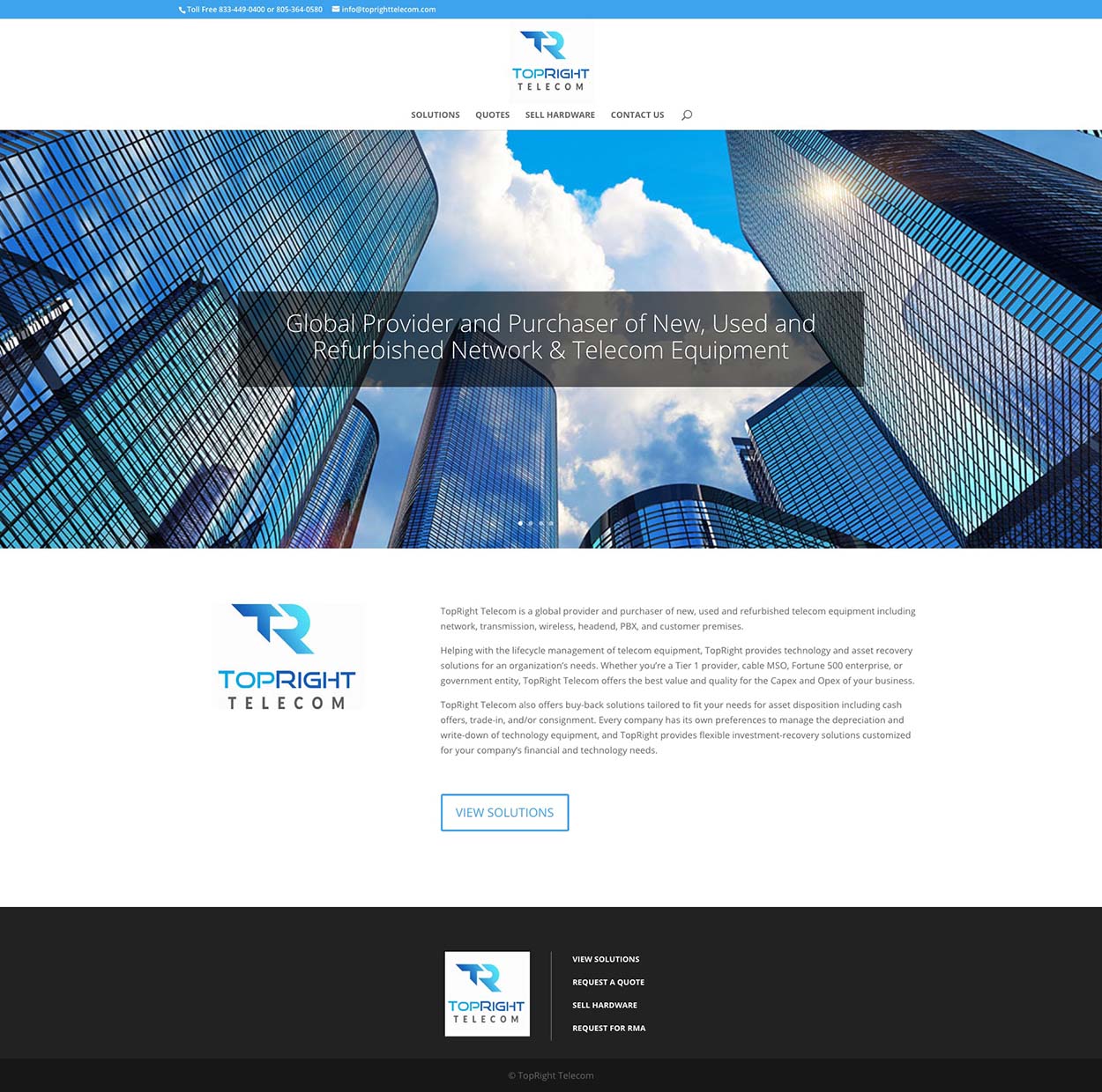 TopRight Telecom is a global provider and purchaser of new, used and refurbished telecom equipment including network, transmission, wireless, headend, PBX, and customer premises.