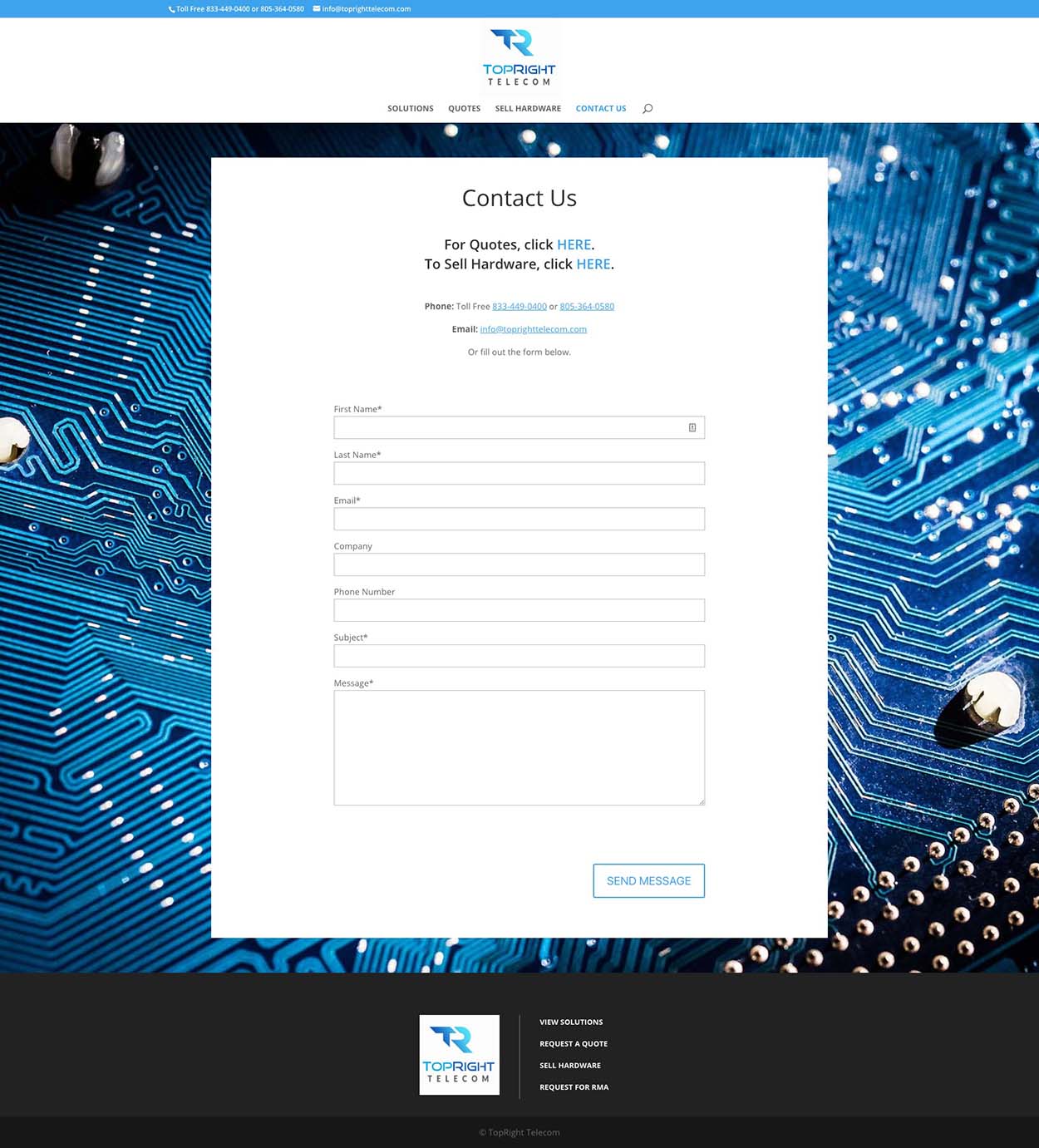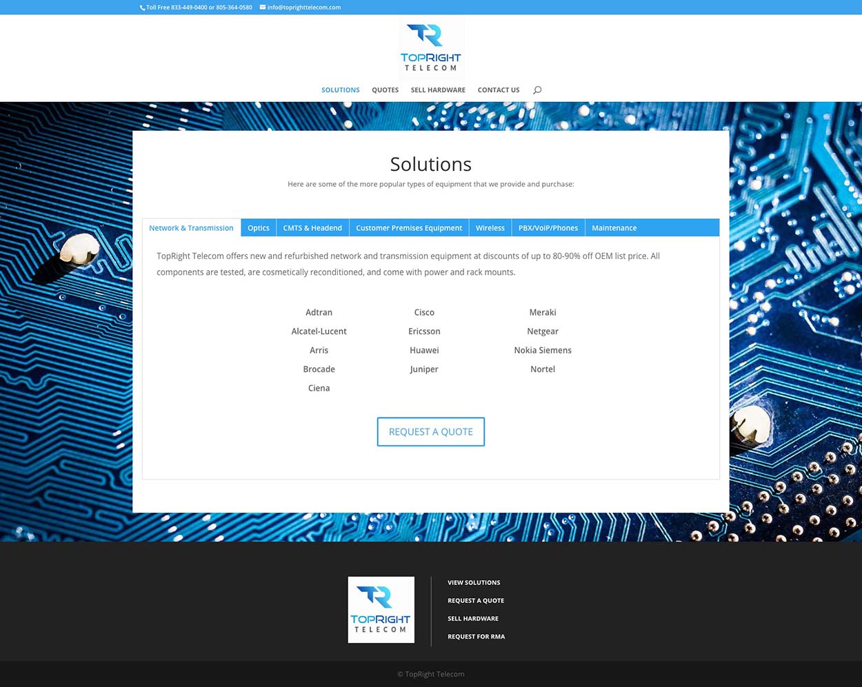 Because the telecom industry has many different types of equipment and brands, tabs were used to separate the categories, so the information is easier to navigate, and so potential customers can find what they’re looking and fill out the appropriate contact form.